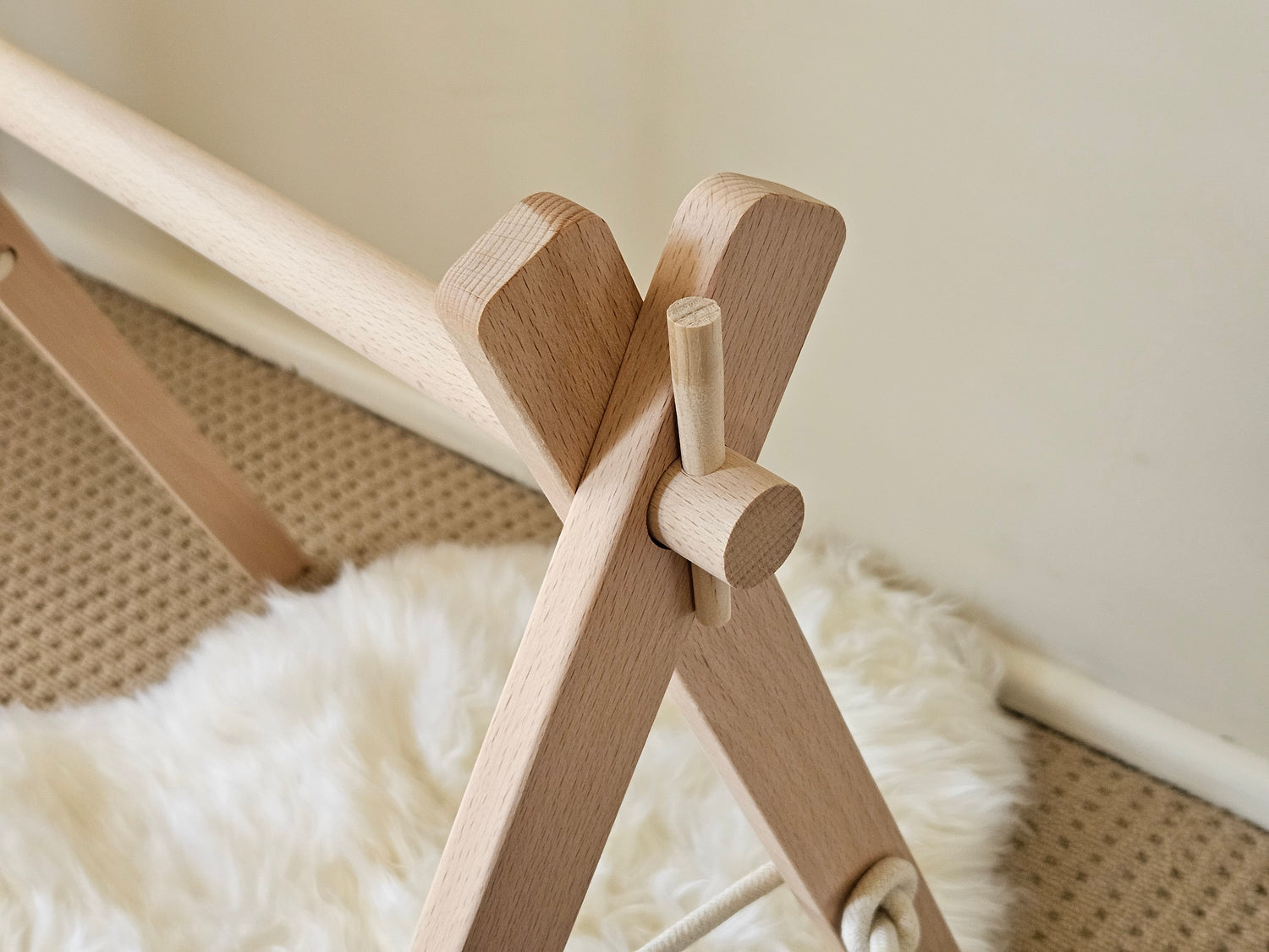 Baby gym frame is made of unfinished alder wood and sanded to be silky smooth.
