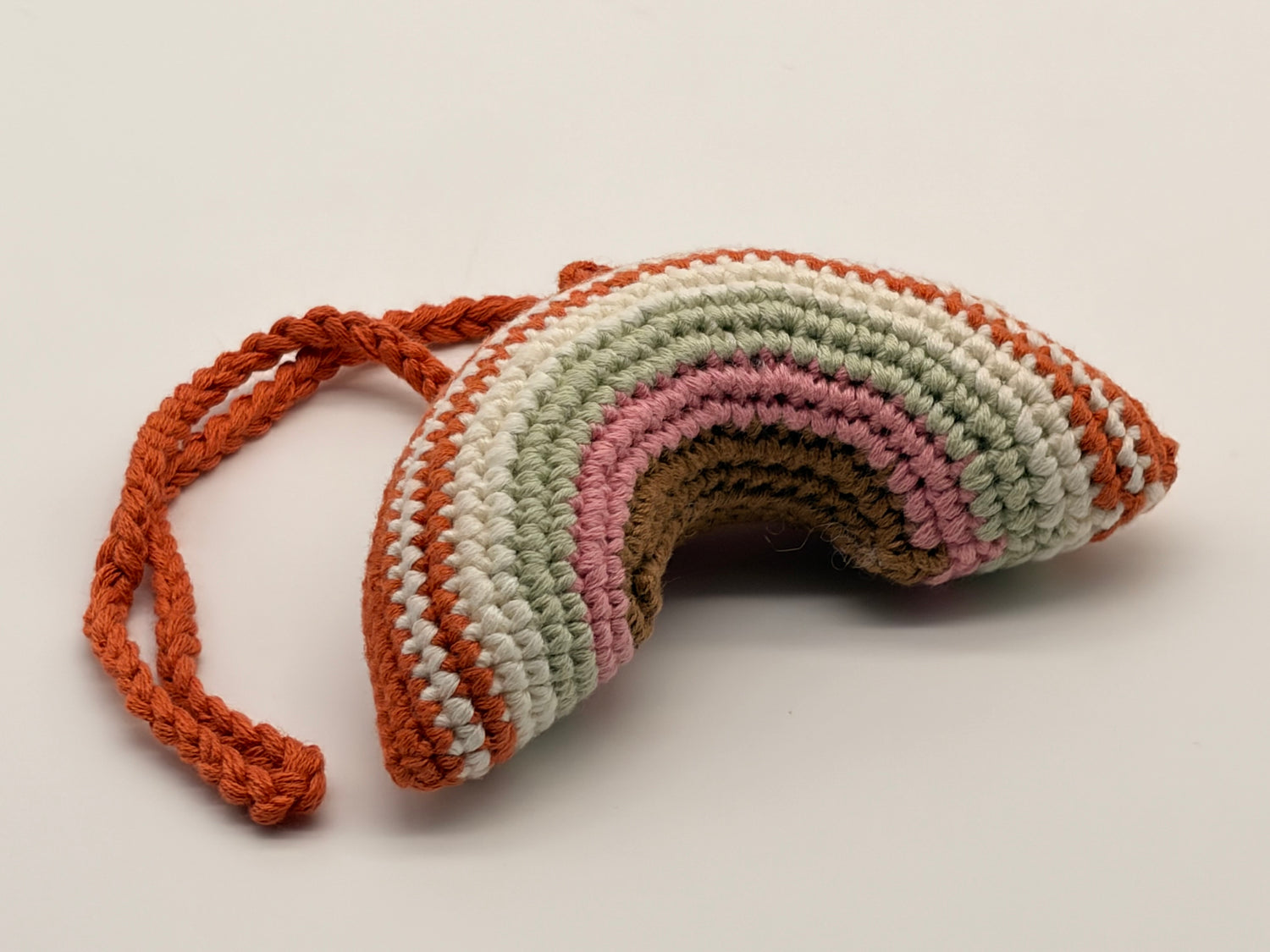 Each toy is hand crocheted from high quality 100% cotton, stuffed with polyester filling and has a plastic rattle inside. The toys measure from 10 cm to 13 cm in height. All crocheted toys feature embroidered eyes for babies safety.