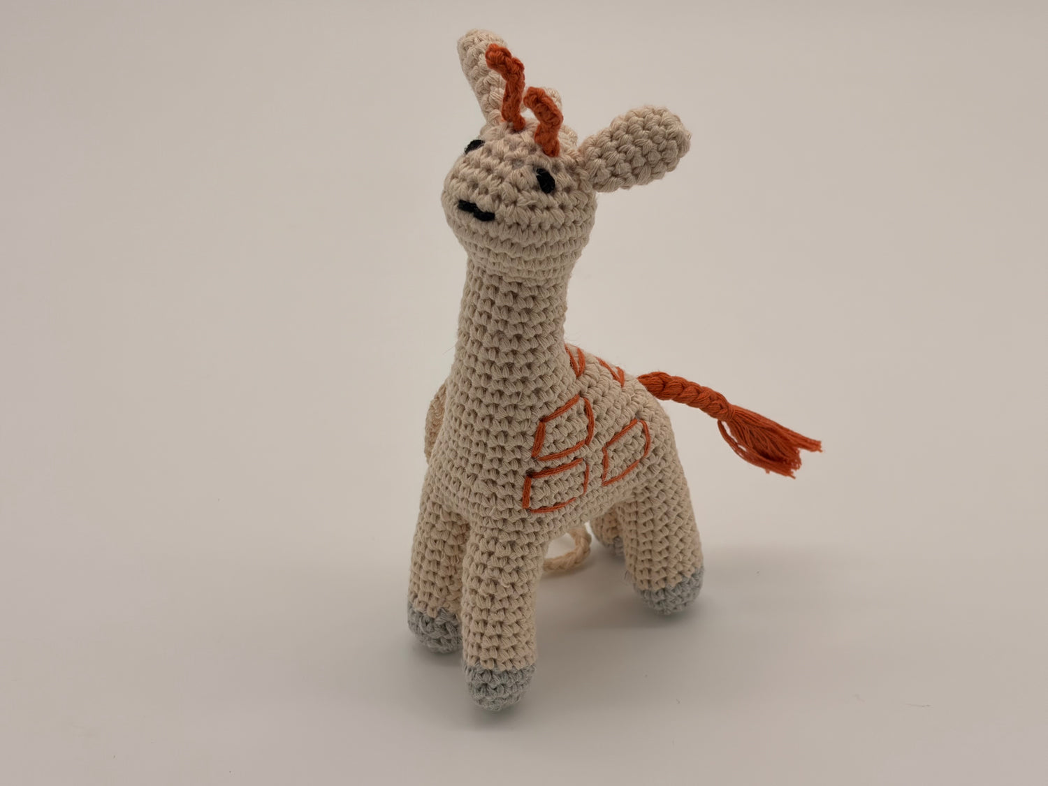 Each toy is hand crocheted from high quality 100% cotton, stuffed with polyester filling and has a plastic rattle inside. The toys measure from 10 cm to 13 cm in height. All crocheted toys feature embroidered eyes for babies safety.